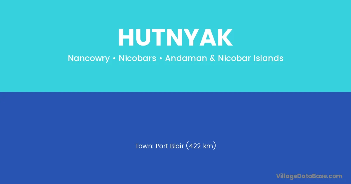 Port Blair (422 km) is the nearest town to Hutnyak village for major economic activities and is located approximately 422 km away.