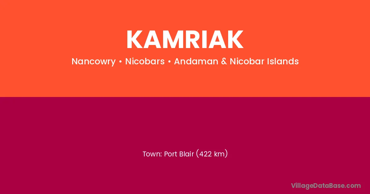 Port Blair (422 km) is the nearest town to Kamriak village for major economic activities and is located approximately 422 km away.
