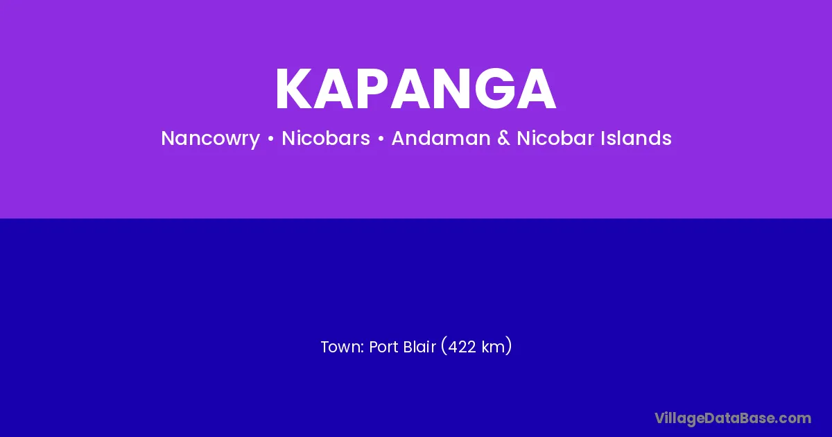 Port Blair (422 km) is the nearest town to Kapanga village for major economic activities and is located approximately 422 km away.