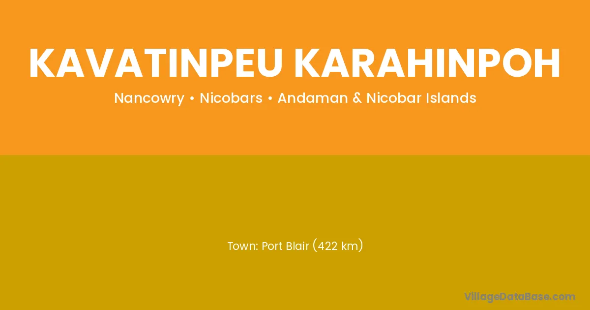Port Blair (422 km) is the nearest town to Kavatinpeu Karahinpoh village for major economic activities and is located approximately 422 km away.