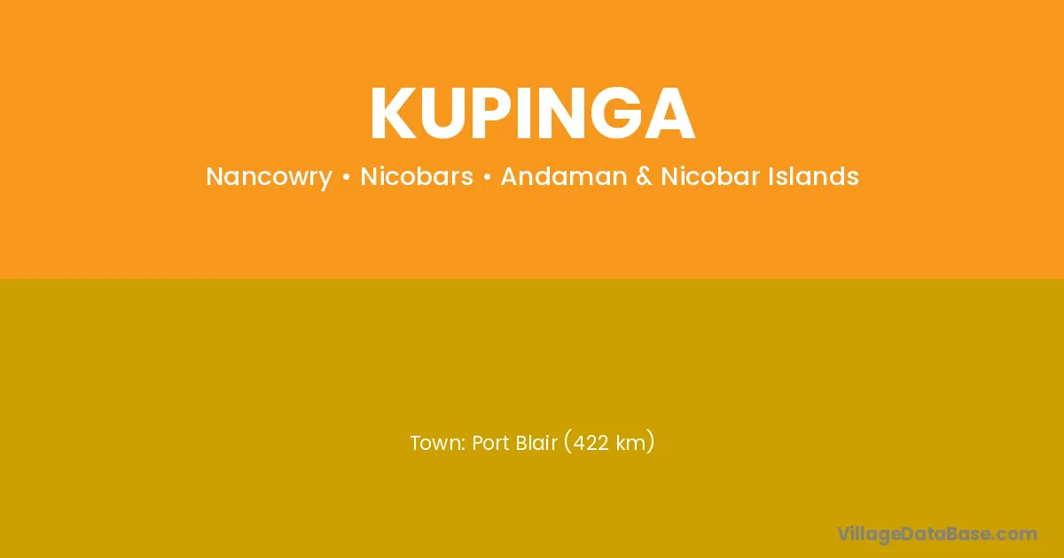 Port Blair (422 km) is the nearest town to Kupinga village for major economic activities and is located approximately 422 km away.