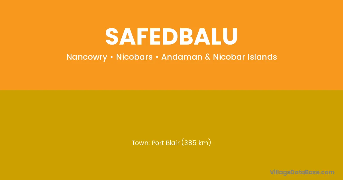 Port Blair (385 km) is the nearest town to Safedbalu village for major economic activities and is located approximately 385 km away.