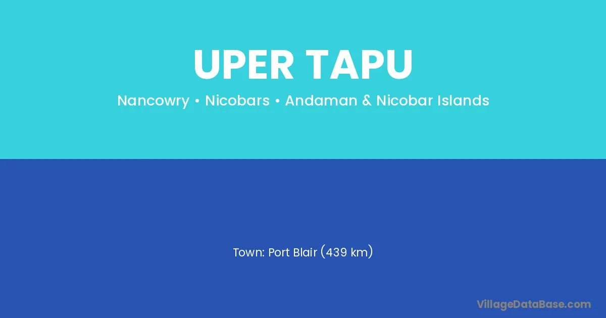 Port Blair (439 km) is the nearest town to Uper Tapu village for major economic activities and is located approximately 439 km away.