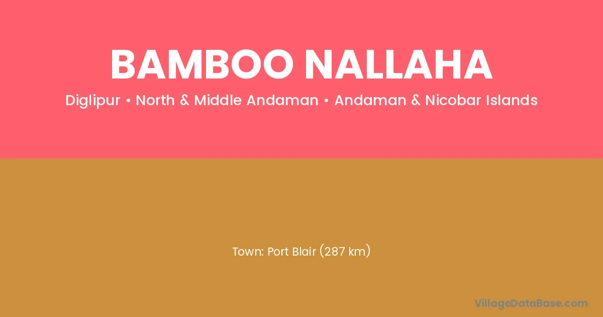 Port Blair (287 km) is the nearest town to Bamboo Nallaha village for major economic activities and is located approximately 287 km away.