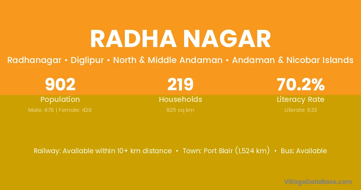 Port Blair (1,524 km) is the nearest town to Radha Nagar village for major economic activities