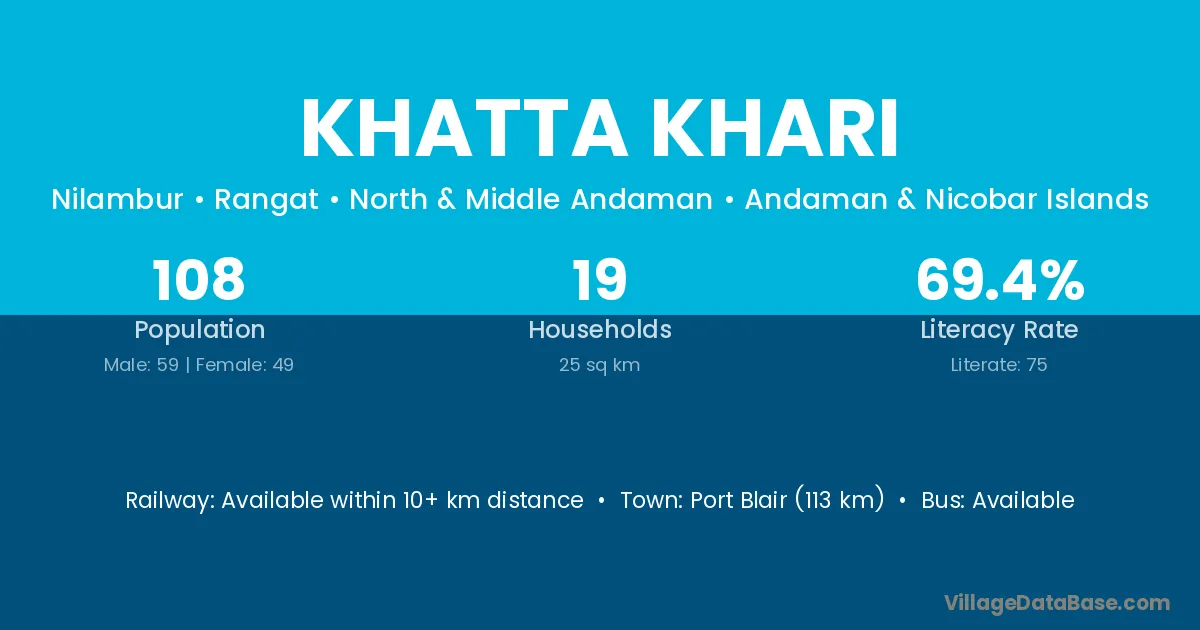 Port Blair (113 km) is the nearest town to Khatta Khari village for major economic activities and is located approximately 113 km away.