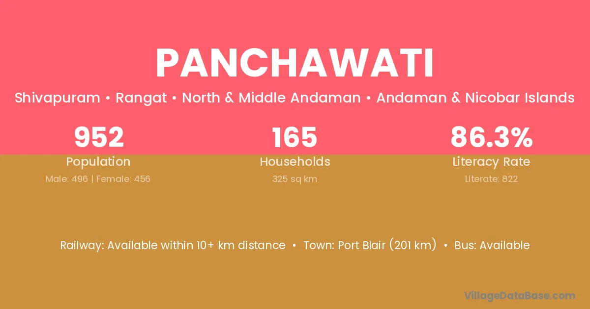 Port Blair (201 km) is the nearest town to Panchawati village for major economic activities and is located approximately 201 km away.