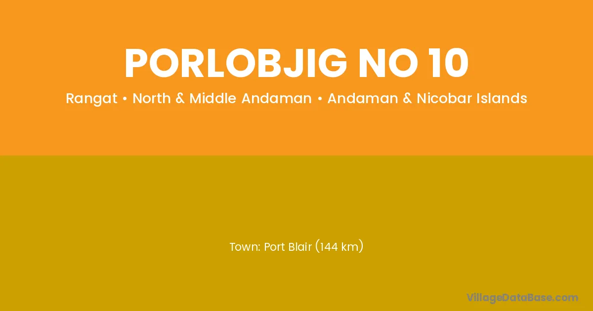 Port Blair (144 km) is the nearest town to Porlobjig No 10 village for major economic activities and is located approximately 144 km away.