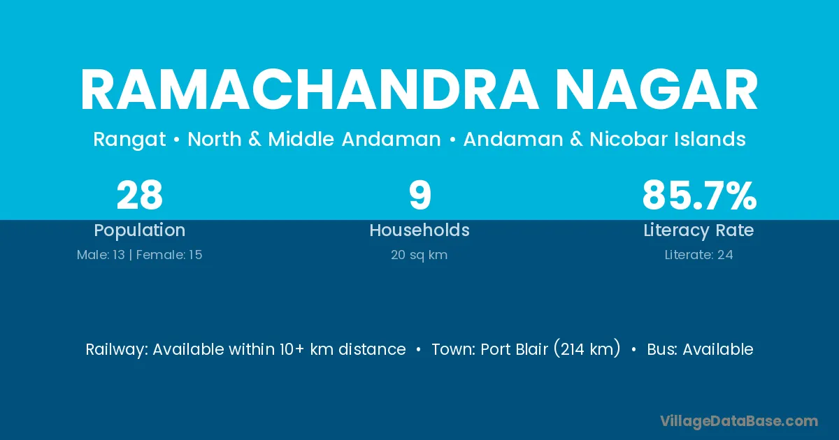 Port Blair (214 km) is the nearest town to Ramachandra Nagar village for major economic activities and is located approximately 214 km away.