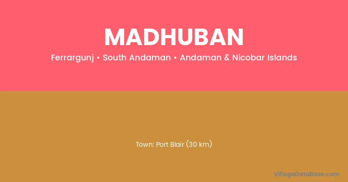 Port Blair (30 km) is the nearest town to Madhuban village for major economic activities and is located approximately 30 km away.