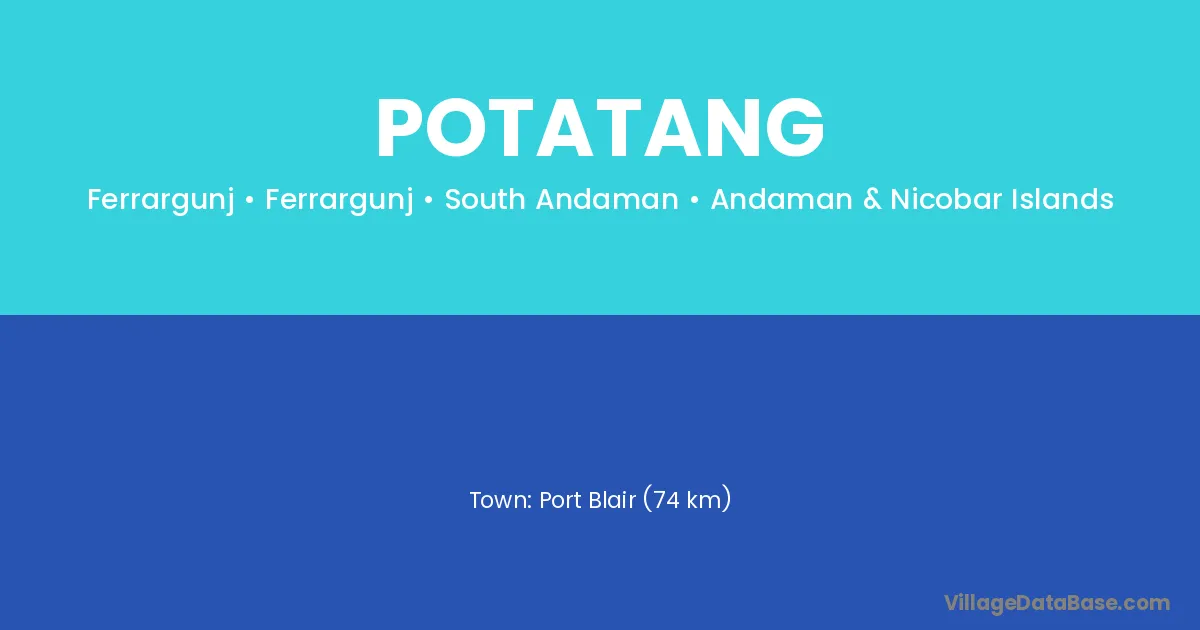 Port Blair (74 km) is the nearest town to Potatang village for major economic activities and is located approximately 74 km away.