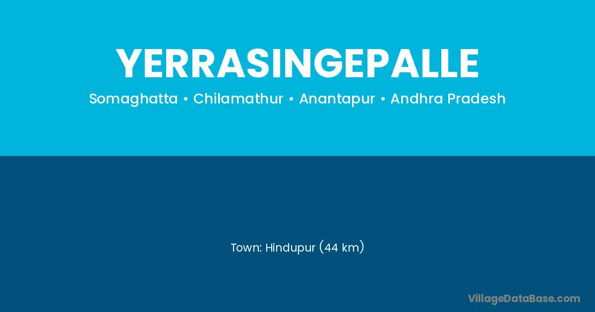 Hindupur (44 km) is the nearest town to Yerrasingepalle village for major economic activities and is located approximately 44 km away.