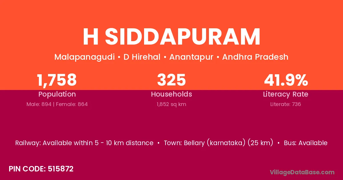 H Siddapuram village has a total population of 1,758 people, of which 894 are males and 864 are females.