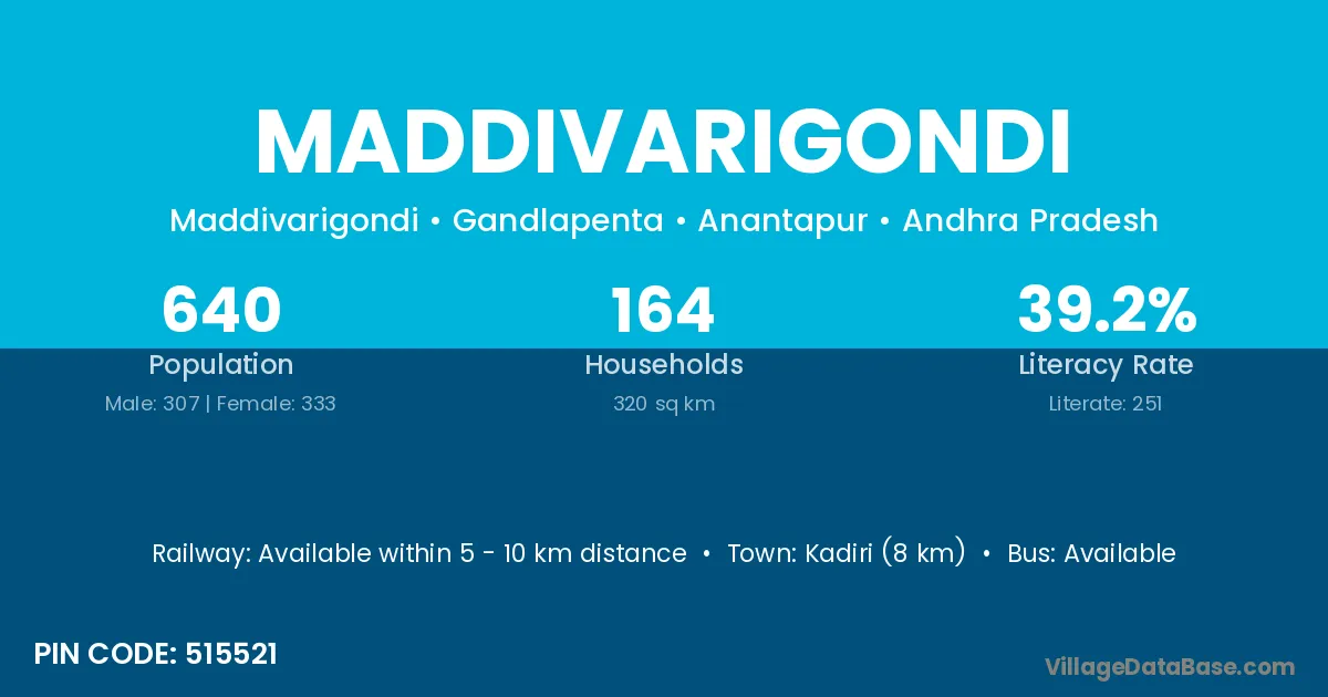 Maddivarigondi village has a total population of 640 people, of which 307 are males and 333 are females.