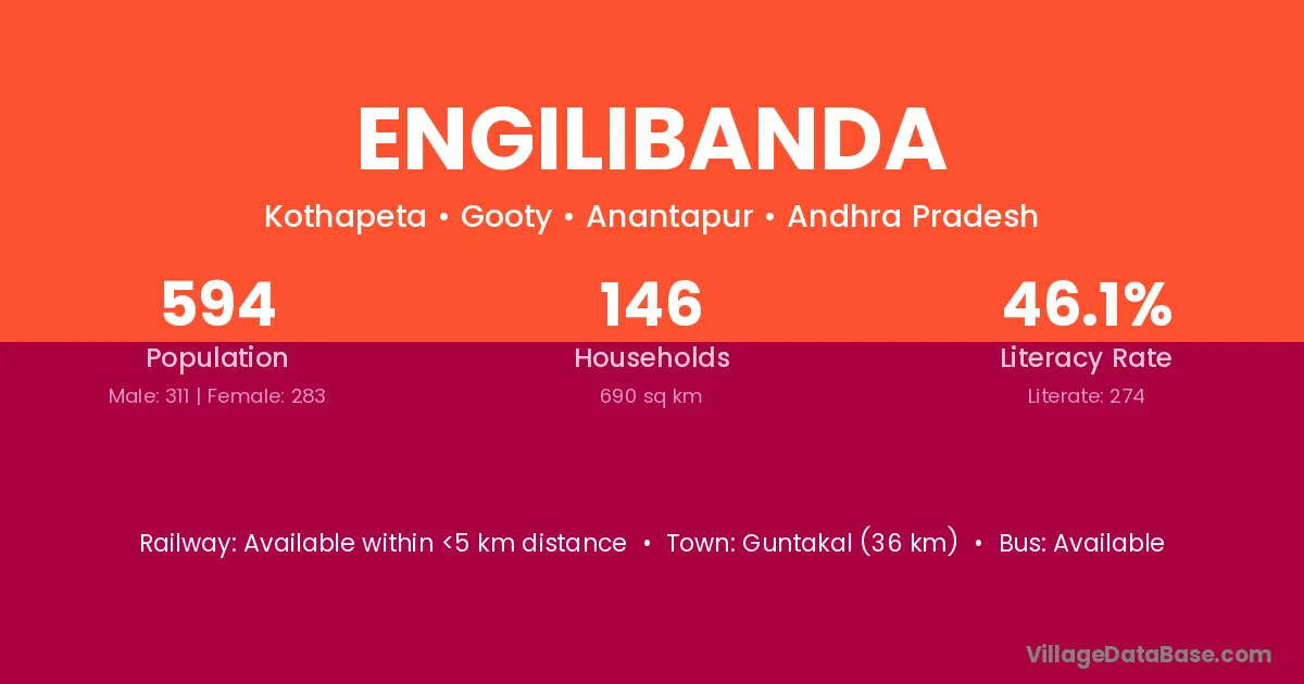 Guntakal (36 km) is the nearest town to Engilibanda village for major economic activities and is located approximately 36 km away.