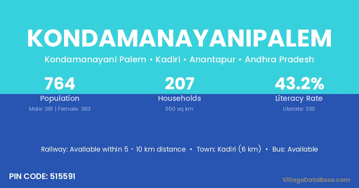 Kadiri (6 km) is the nearest town to Kondamanayanipalem village for major economic activities and is located approximately 6 km away.