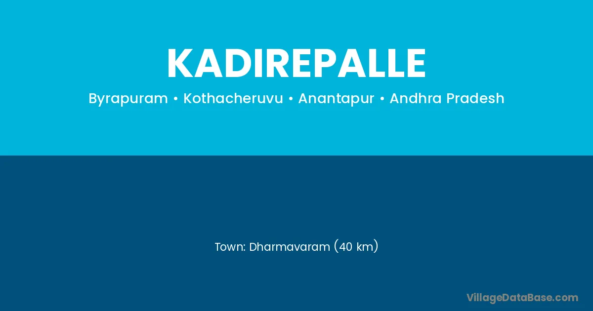 Dharmavaram (40 km) is the nearest town to Kadirepalle village for major economic activities and is located approximately 40 km away.
