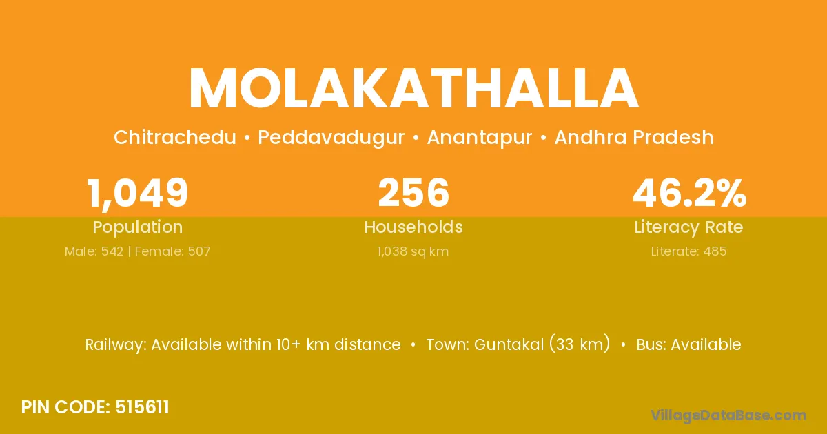Molakathalla village has a total population of 1,049 people, of which 542 are males and 507 are females.