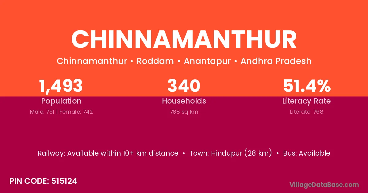 Hindupur (28 km) is the nearest town to Chinnamanthur village for major economic activities and is located approximately 28 km away.