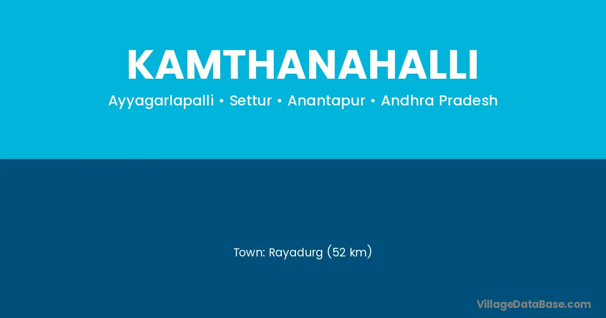 Rayadurg (52 km) is the nearest town to Kamthanahalli village for major economic activities and is located approximately 52 km away.