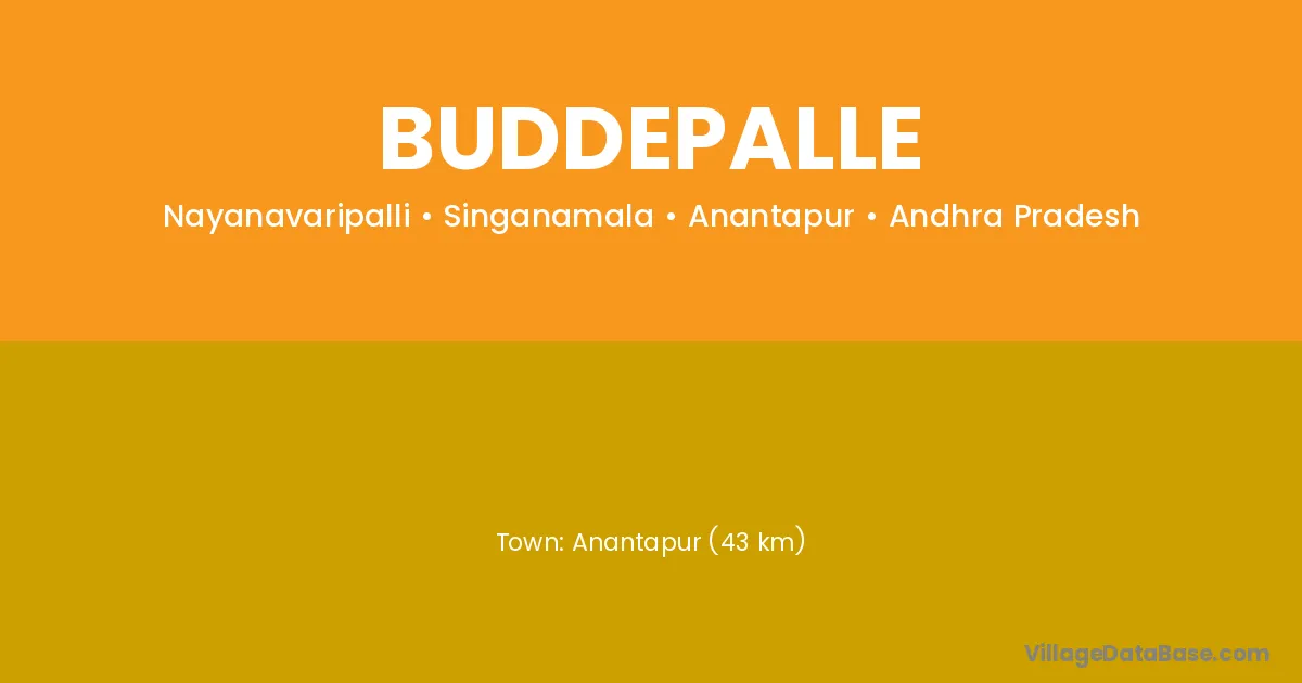 Anantapur (43 km) is the nearest town to Buddepalle village for major economic activities and is located approximately 43 km away.