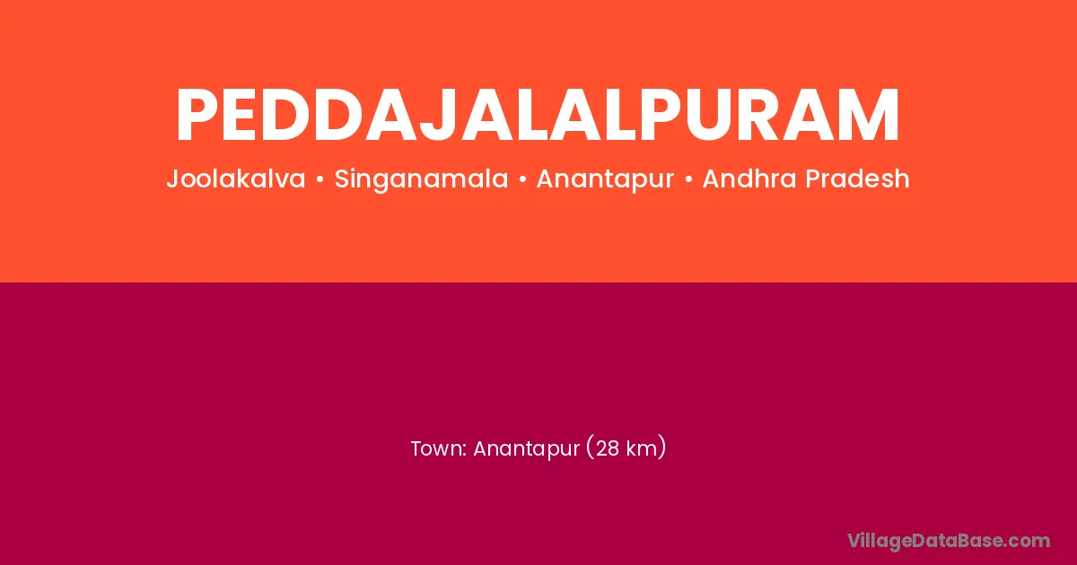 Anantapur (28 km) is the nearest town to Peddajalalpuram village for major economic activities and is located approximately 28 km away.