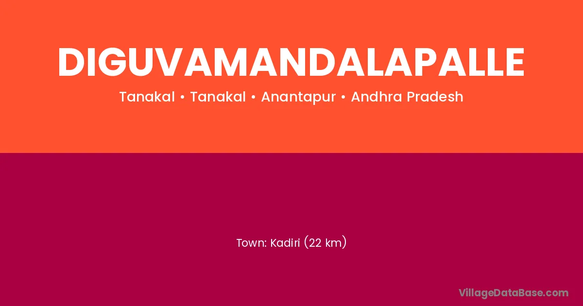 Kadiri (22 km) is the nearest town to Diguvamandalapalle village for major economic activities and is located approximately 22 km away.