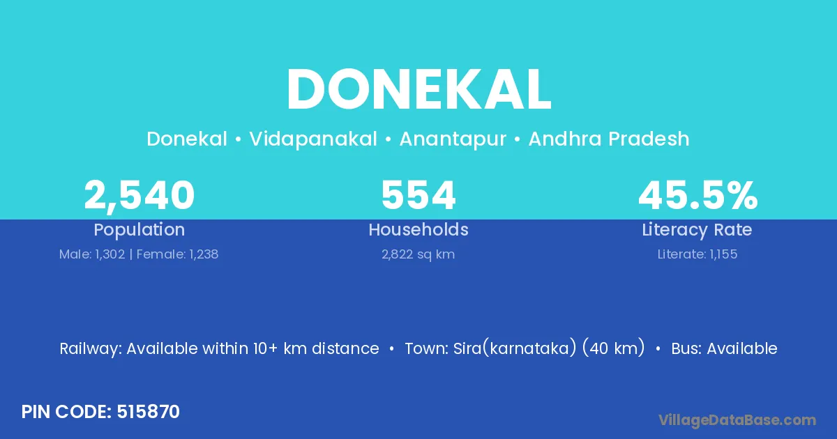 According to Census 2011 information, the village code of Donekal village is 515870.