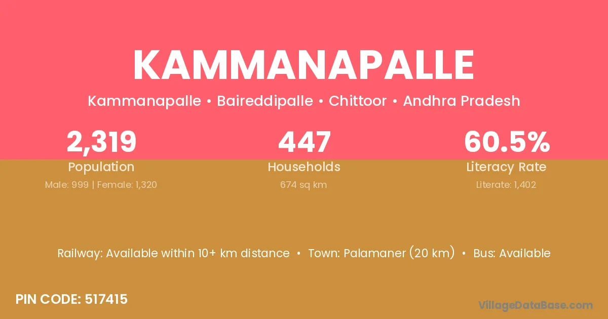 Palamaner (20 km) is the nearest town to Kammanapalle village for major economic activities and is located approximately 20 km away.