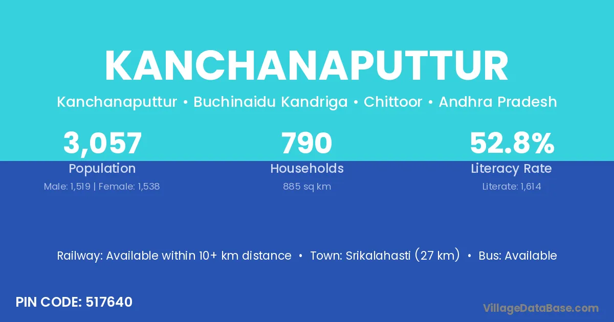 Srikalahasti (27 km) is the nearest town to Kanchanaputtur village for major economic activities and is located approximately 27 km away.