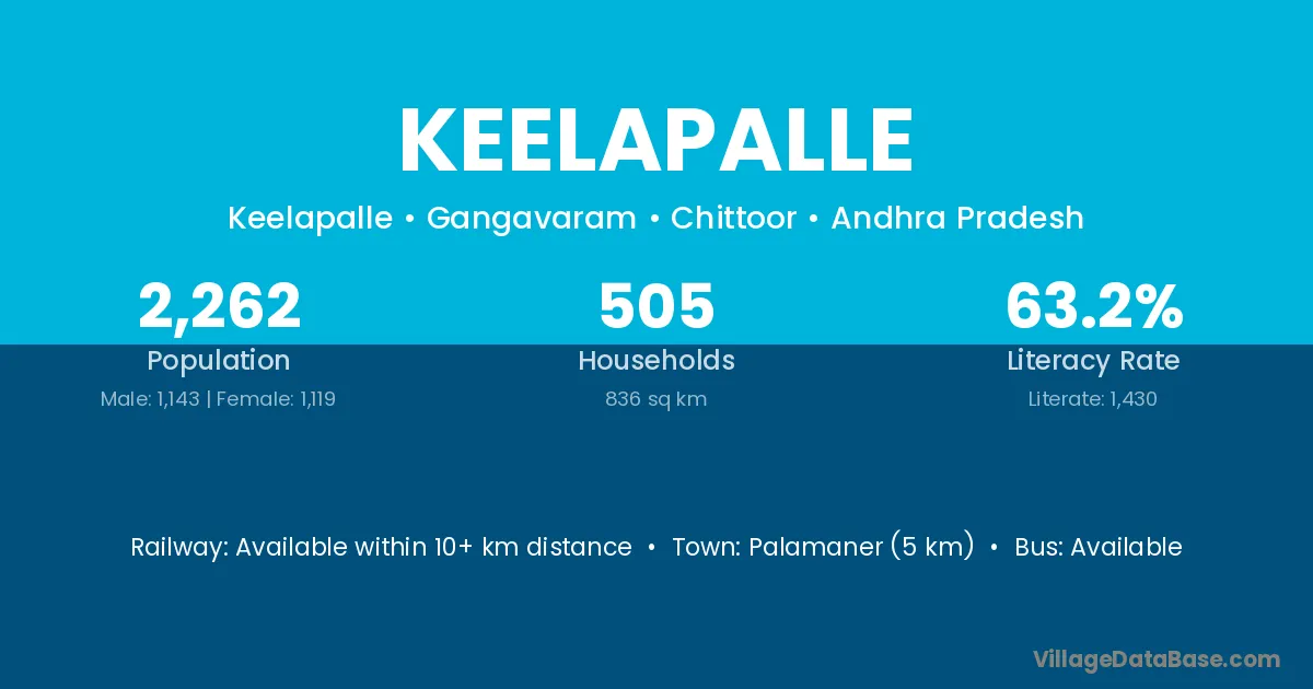 Palamaner (5 km) is the nearest town to Keelapalle village for major economic activities and is located approximately 5 km away.