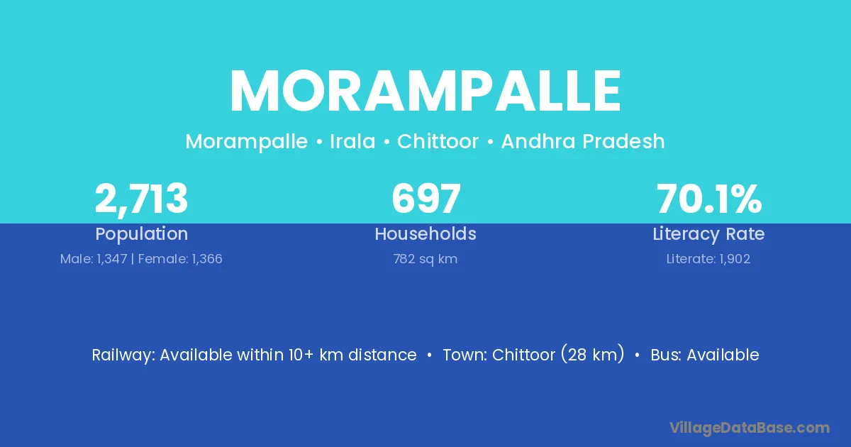 Chittoor (28 km) is the nearest town to Morampalle village for major economic activities and is located approximately 28 km away.