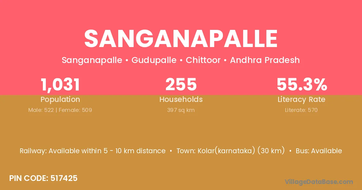 According to Census 2011 information, the village code of Sanganapalle village is 517425.