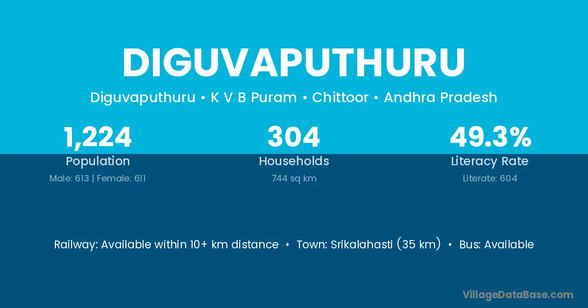 Diguvaputhuru village has a total population of 1,224 people, of which 613 are males and 611 are females.