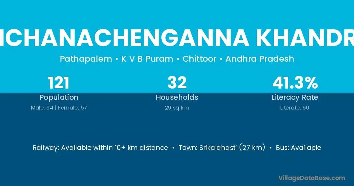 Srikalahasti (27 km) is the nearest town to Kanchanachenganna Khandriga village for major economic activities and is located approximately 27 km away.