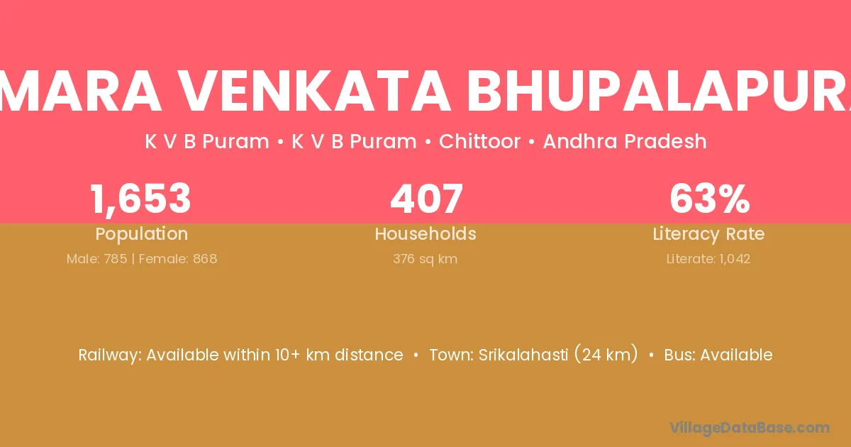 Srikalahasti (24 km) is the nearest town to Kumara Venkata Bhupalapuram village for major economic activities and is located approximately 24 km away.