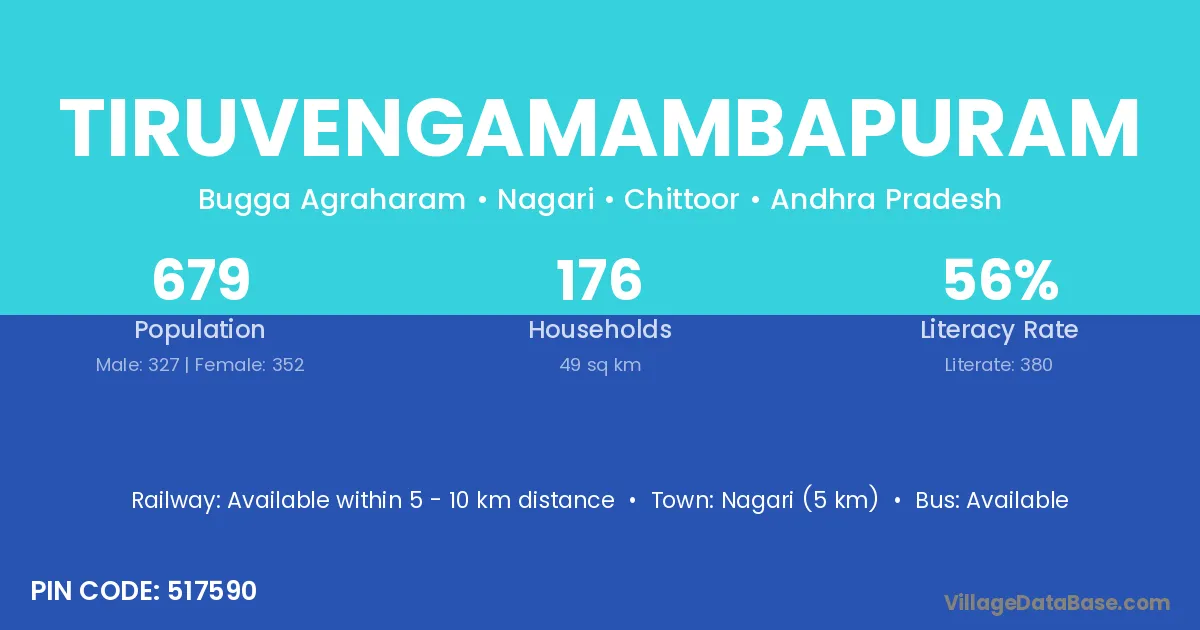 Nagari (5 km) is the nearest town to Tiruvengamambapuram village for major economic activities and is located approximately 5 km away.