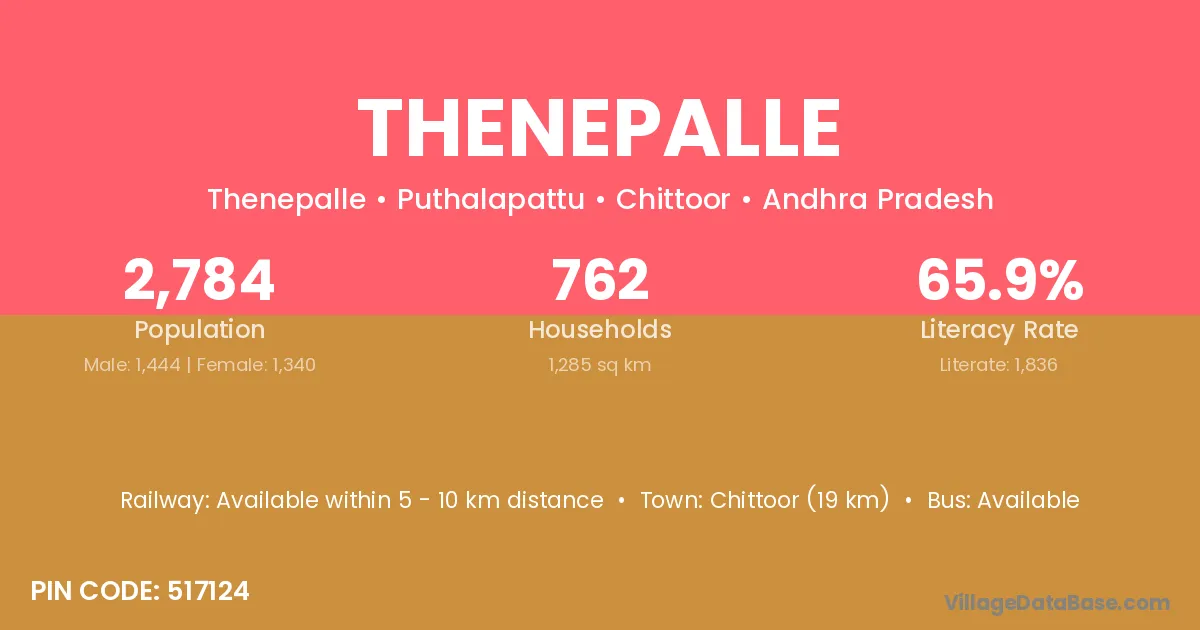Chittoor (19 km) is the nearest town to Thenepalle village for major economic activities and is located approximately 19 km away.