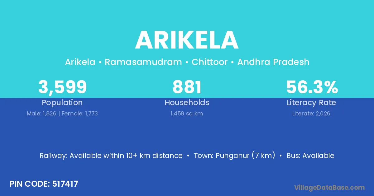 Punganur (7 km) is the nearest town to Arikela village for major economic activities and is located approximately 7 km away.