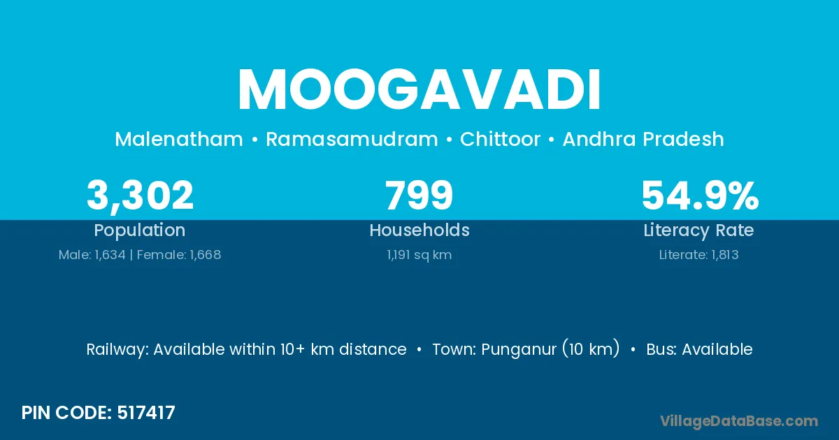 According to Census 2011 information, the village code of Moogavadi village is 517417.