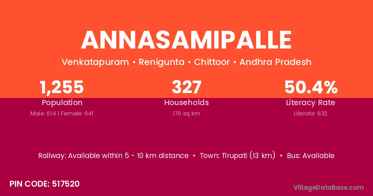 Annasamipalle village has a total population of 1,255 people, of which 614 are males and 641 are females.