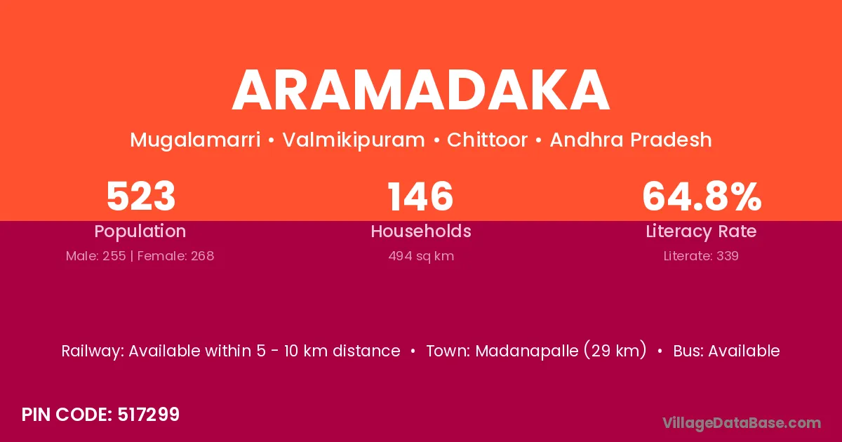 Madanapalle (29 km) is the nearest town to Aramadaka village for major economic activities and is located approximately 29 km away.
