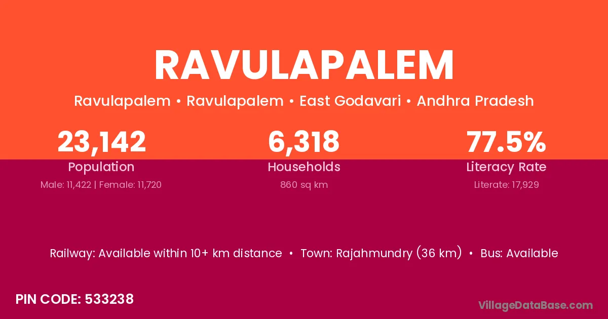 According to Census 2011 information, the village code of Ravulapalem village is 533483.