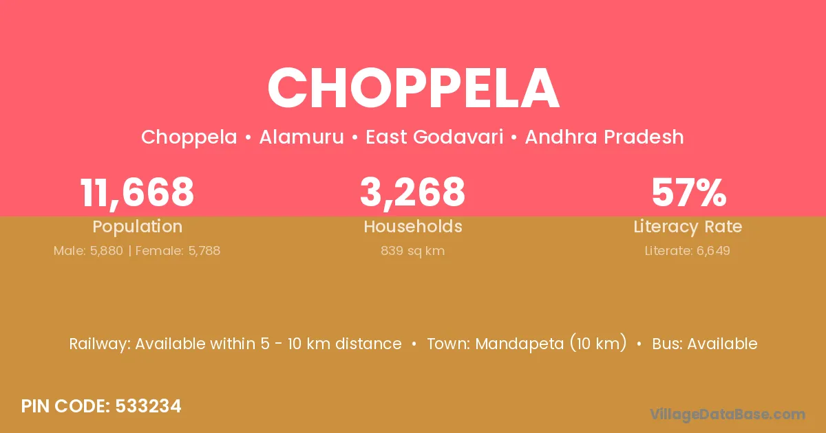 According to Census 2011 information, the village code of Choppela village is 533234.