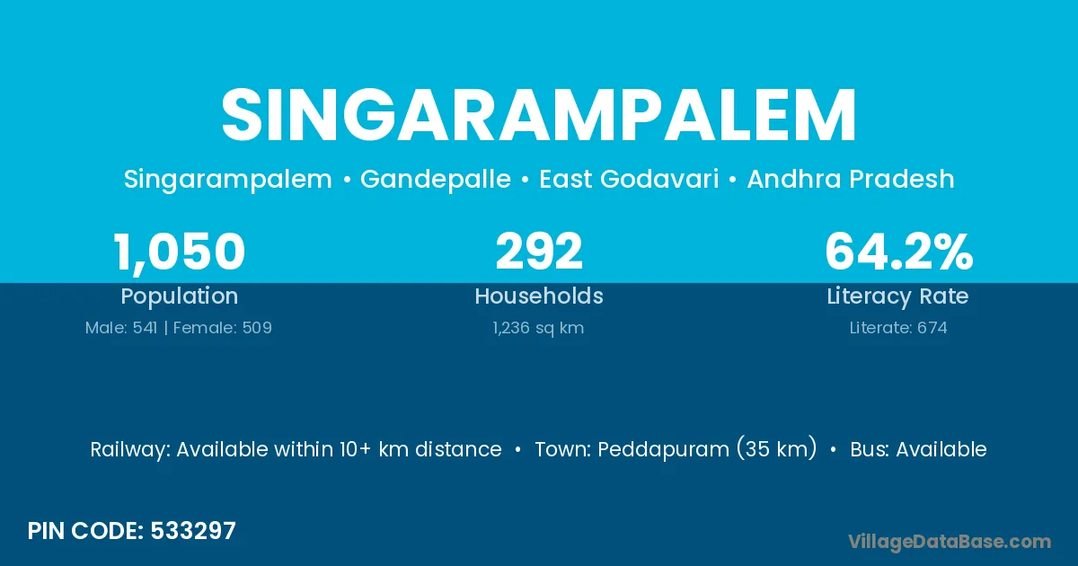 Singarampalem village has a total population of 1,050 people, of which 541 are males and 509 are females.