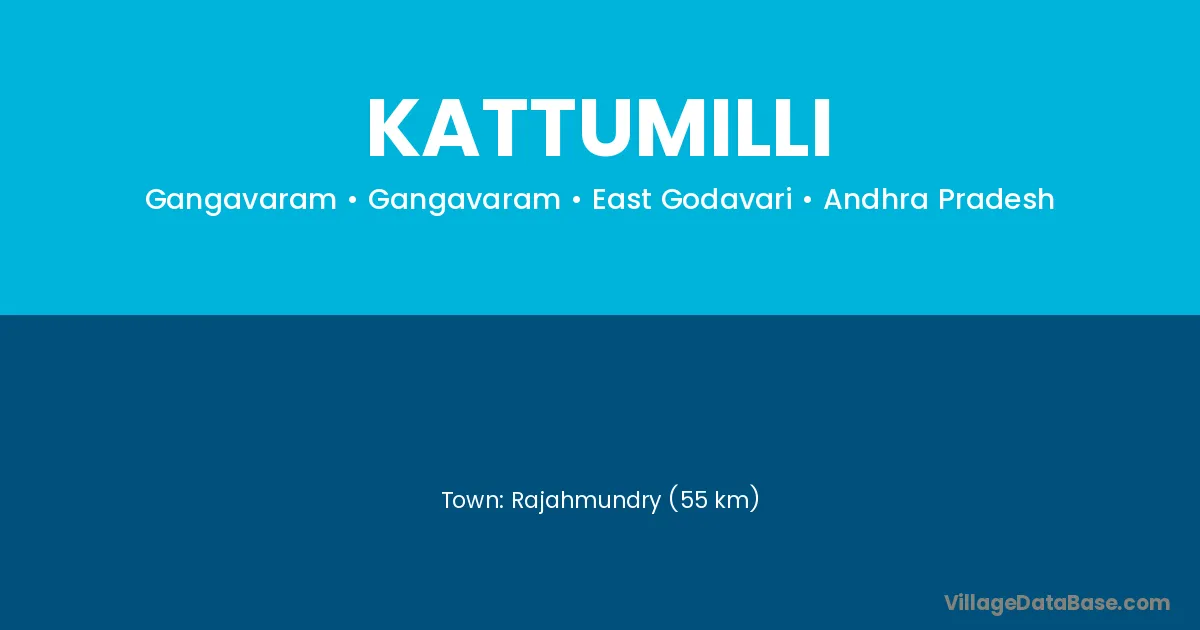 Rajahmundry (55 km) is the nearest town to Kattumilli village for major economic activities and is located approximately 55 km away.
