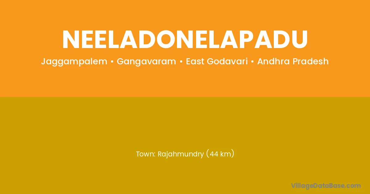 Rajahmundry (44 km) is the nearest town to Neeladonelapadu village for major economic activities and is located approximately 44 km away.