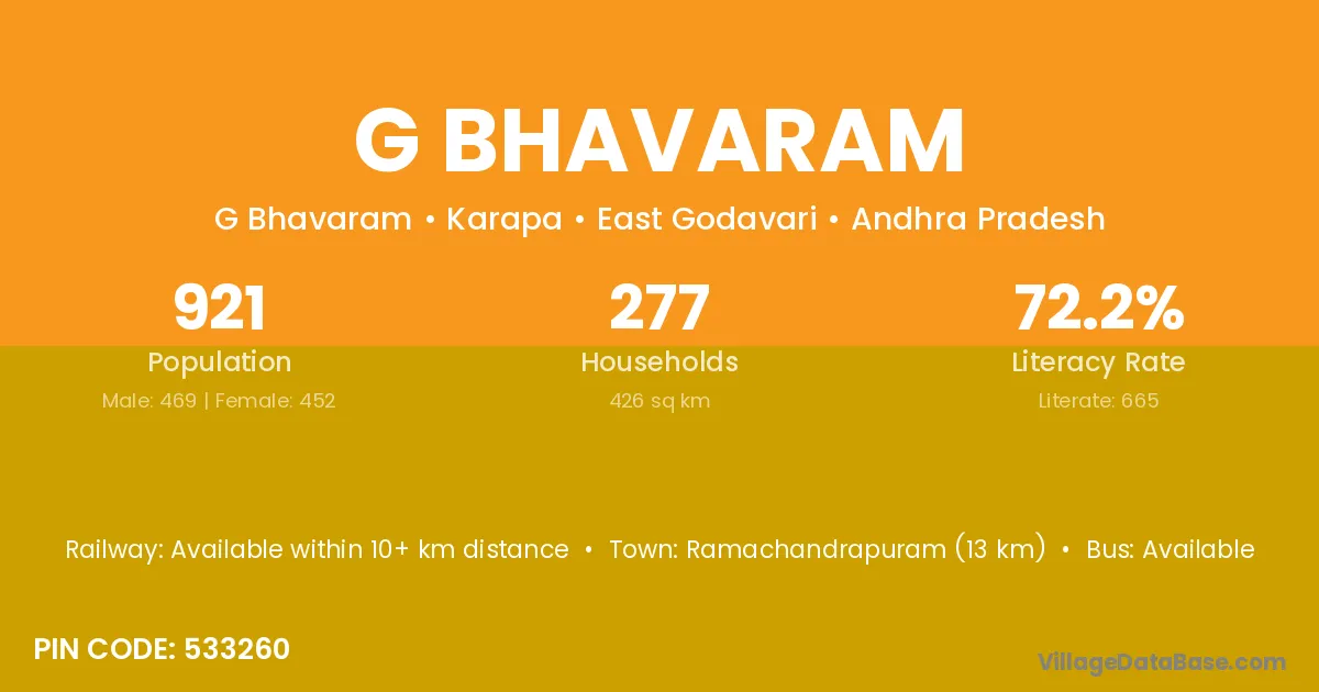 G Bhavaram village has a total population of 921 people, of which 469 are males and 452 are females.