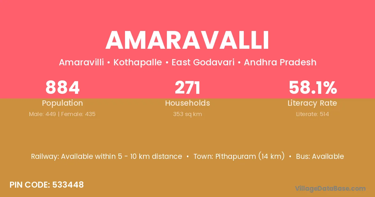 Pithapuram (14 km) is the nearest town to Amaravalli village for major economic activities and is located approximately 14 km away.