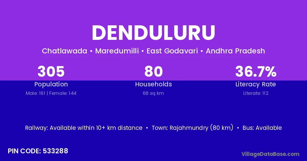 Denduluru village has a total population of 305 people, of which 161 are males and 144 are females.